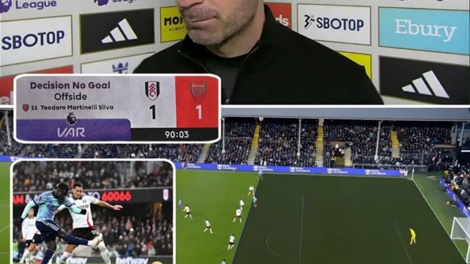 Mikel Arteta expressed deep frustration and disappointment after VAR ruled out what could have been Fulham’s winning goal against Arsenal during their Premier League clash on Sunday.