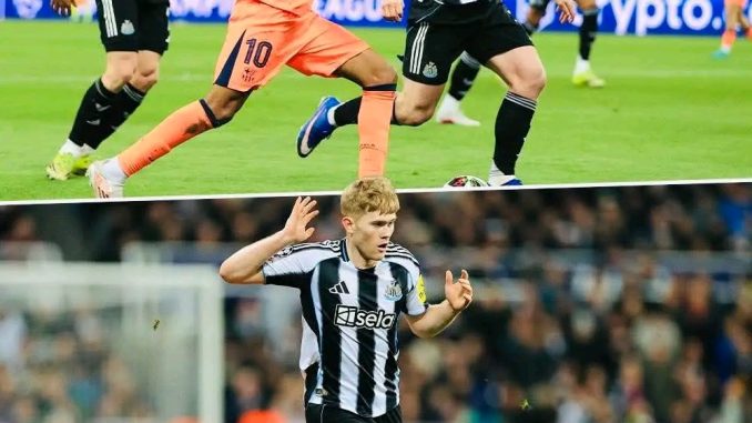 Lewis Hall produced an exceptional display that caught the attention of many during the match, delivering a performance that combined defensive discipline with impressive attacking influence. The Newcastle United F.C. full-back played a crucial role in limiting the impact of Lamine Yamal, one of FC Barcelona’s most exciting young attackers.